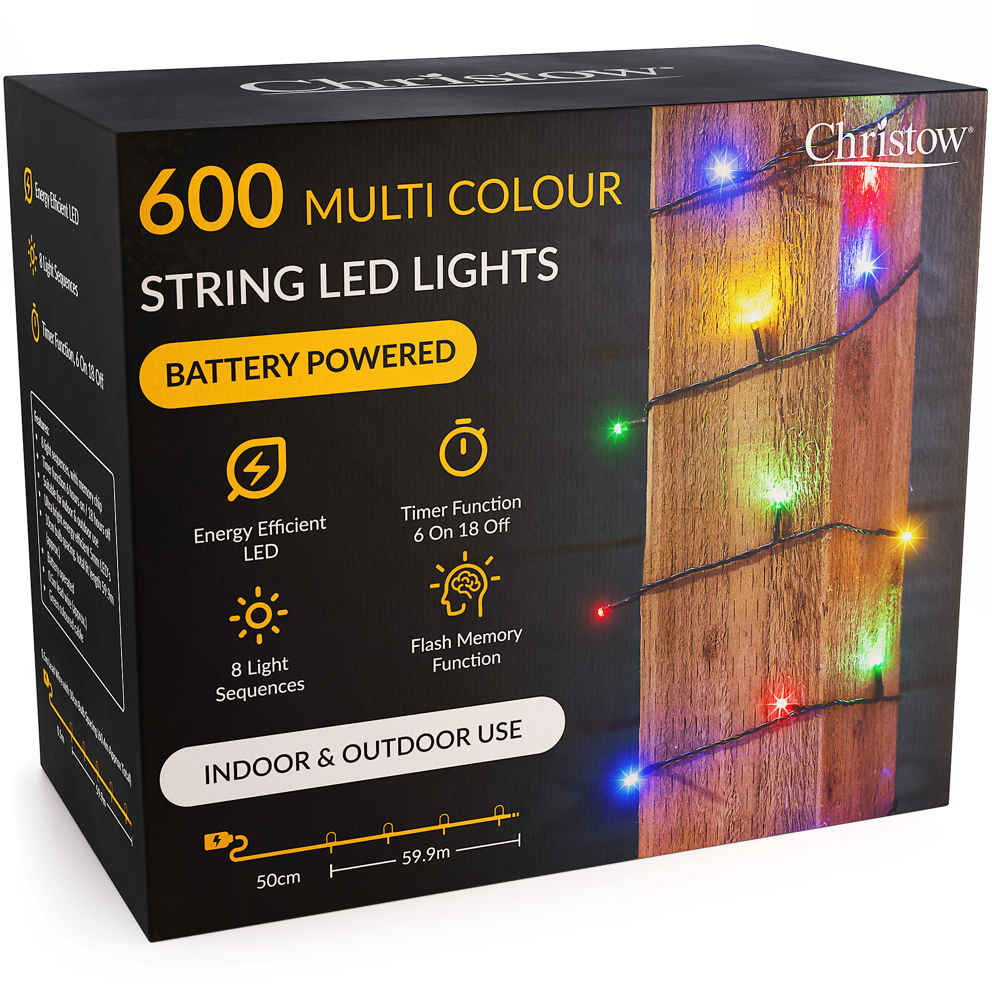 LED Battery Christmas Lights with 50, 100, 200, 300, 400 or 600 LEDs. Plus, they'll automatically turn off after 6 hours. Choose 50 LEDs (5m lit length), 100 LEDs (10m), 200 LEDs (20m), 300 LEDs (30m), 400 LEDs (40m), or 600 LEDs (60m).