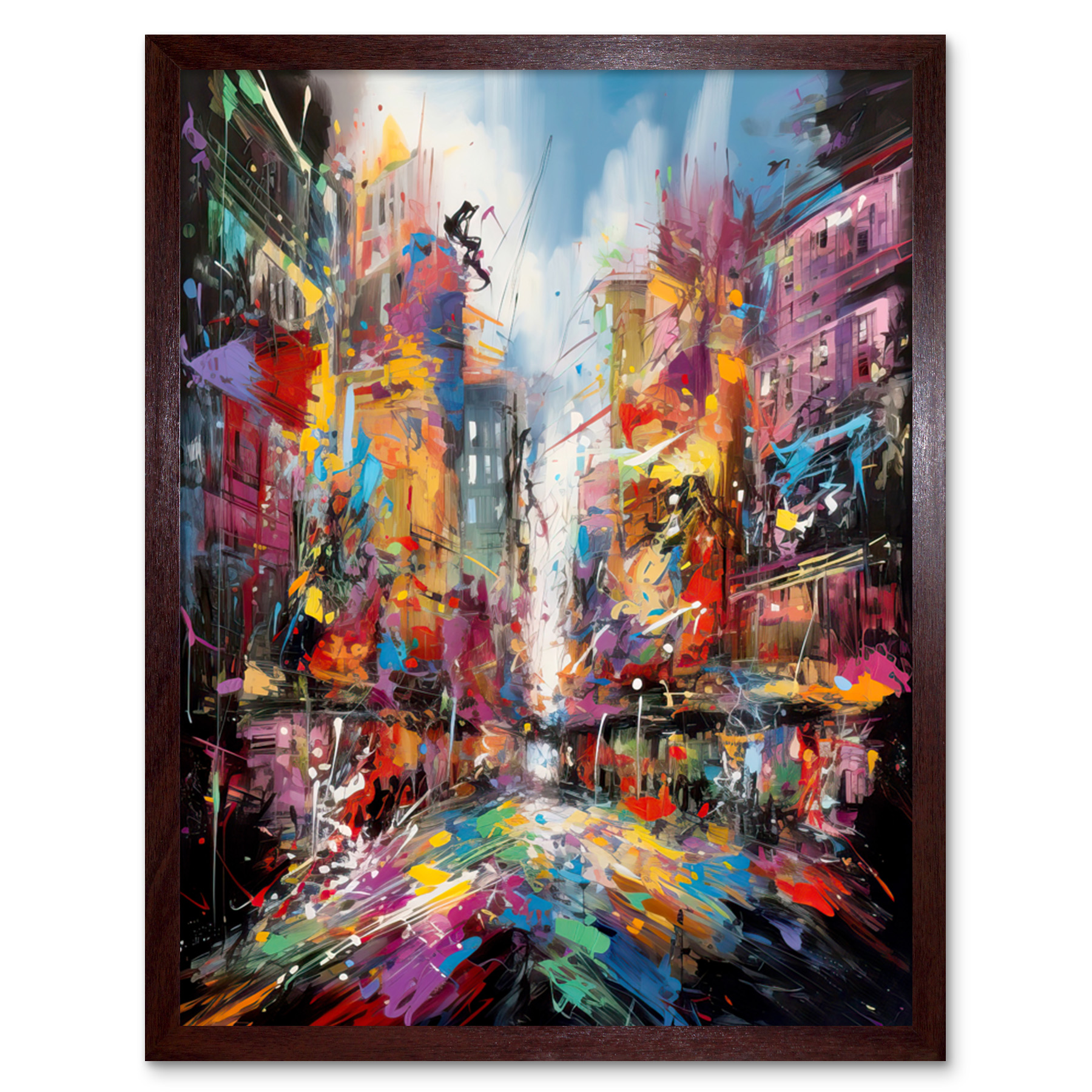 Abstract City Street Modern Vibrant Cityscape Framed Art Picture Print 12x16