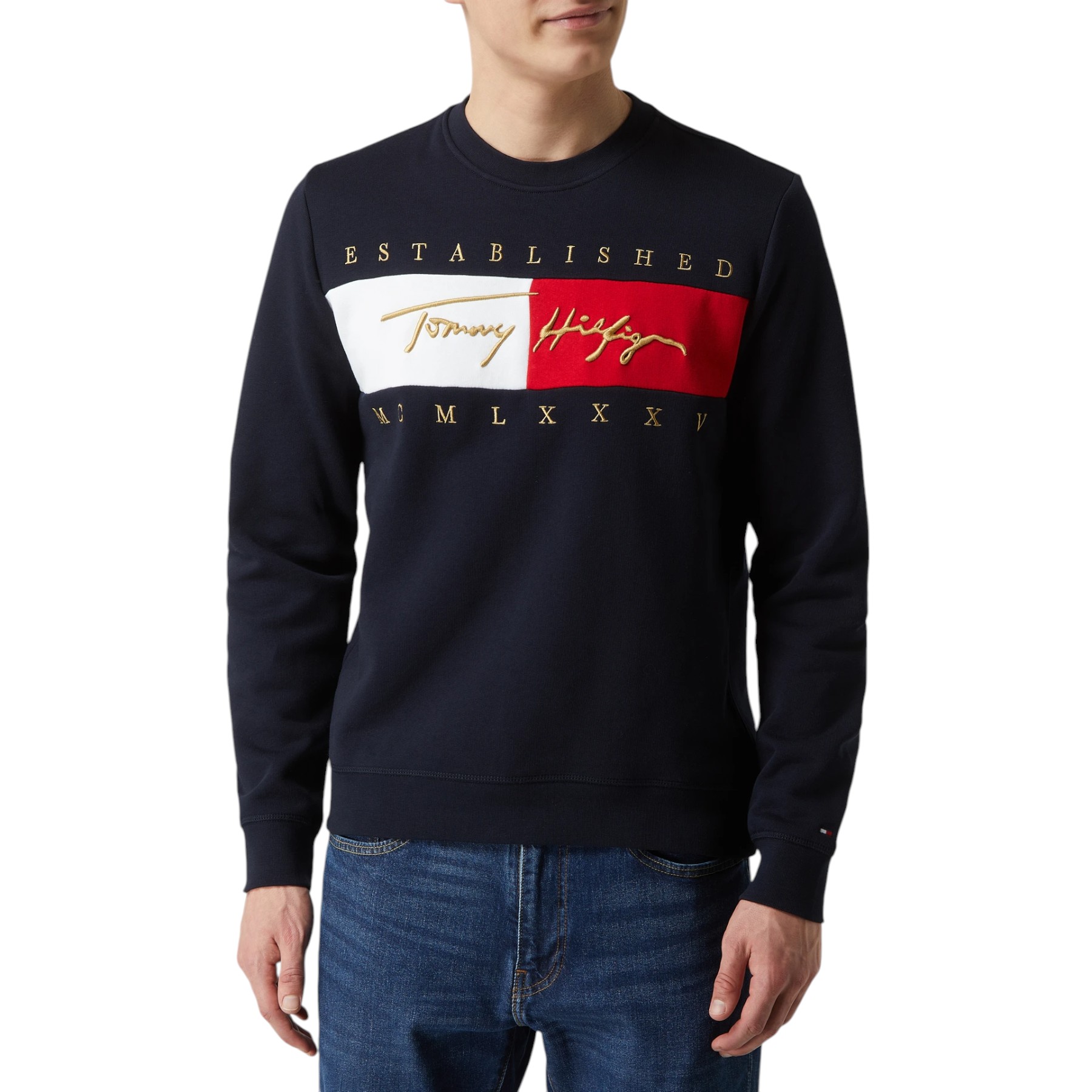 TOMMY HILFIGER Mens Sweatshirts Signature Flag Fleece Pullover Crew Neck Jumper