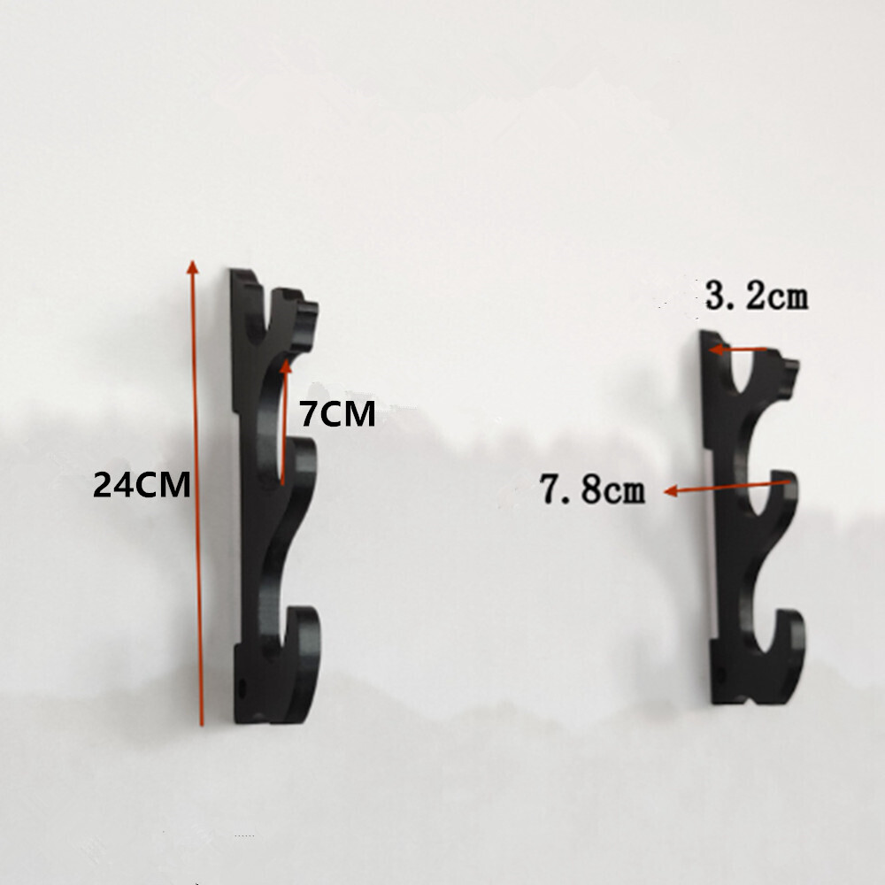 Description: 【Wall Mount】: Wall mounted sword display stand, compact and lightweight, space saving, will not take up too much space, and perfectly display the sword. 【Durable Material】: The sword rack is made of high quality wood material, simple black appearance, wear resistant, sturdy and durable to use. 【Multi Functions】: The multipurpose sword holder is suitable for displaying Samurai swords, , Wakizashi swords, tanto, flutes, fishing rods, etc. 【Easy Installation】: 1 Pair of separated sword display hangers, the distance between the two parts can be adjusted, easy to install, frim and stable. Material: wood Package Includes: 1 Pair Sword Holder