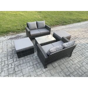 Light grey rattan with dark grey fabric. Color may vary due to light or monitor. The 2 armchairs are adjustable, you can adjust the inclination of the chair back from 90°-130° through the button.
