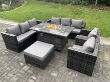 Dark grey mixed rattan with dark grey fabric. Color may vary due to light or monitor. Do not cover the igniter with lava. • 3 Seater Sofa: 177W x 65D x 66H cm. 10 Seater=2 3 Seater Sofa+2 Arm chairs +2 Big footstool.
