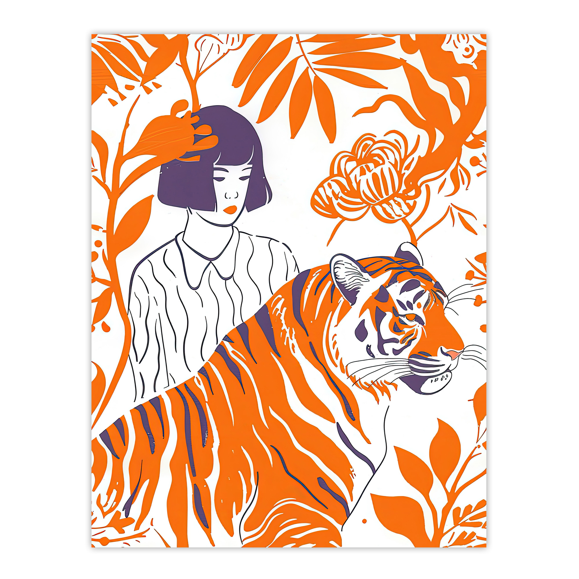 Tiger Lady Jungle Flowers Orange Simple Bright Wall Art Poster Print Picture | ✔ Check At Store | £11.49 |