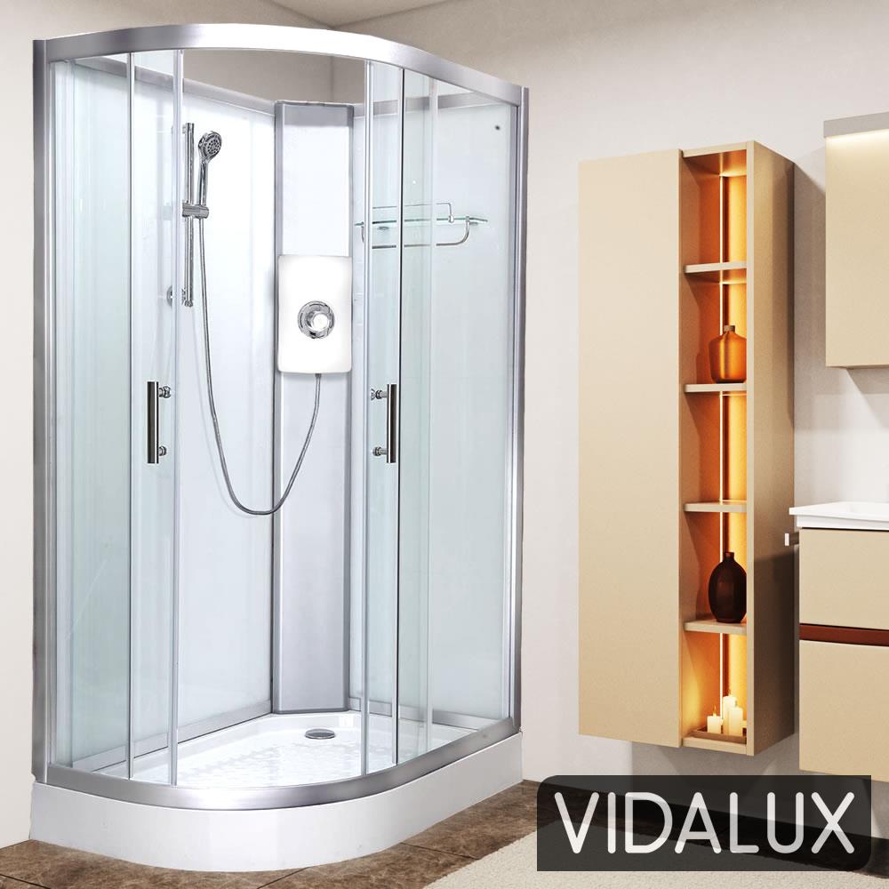 Vidalux Pure E White 1200 x 800 Right Shower Cabin. Elegant in both its simplicity and its design. Vidalux Pure-E 900 Electric Shower Cabin £769.00. Vidalux Digital Shower Head £24.99. Vidalux Clear & Clear Water Softener £119.00.