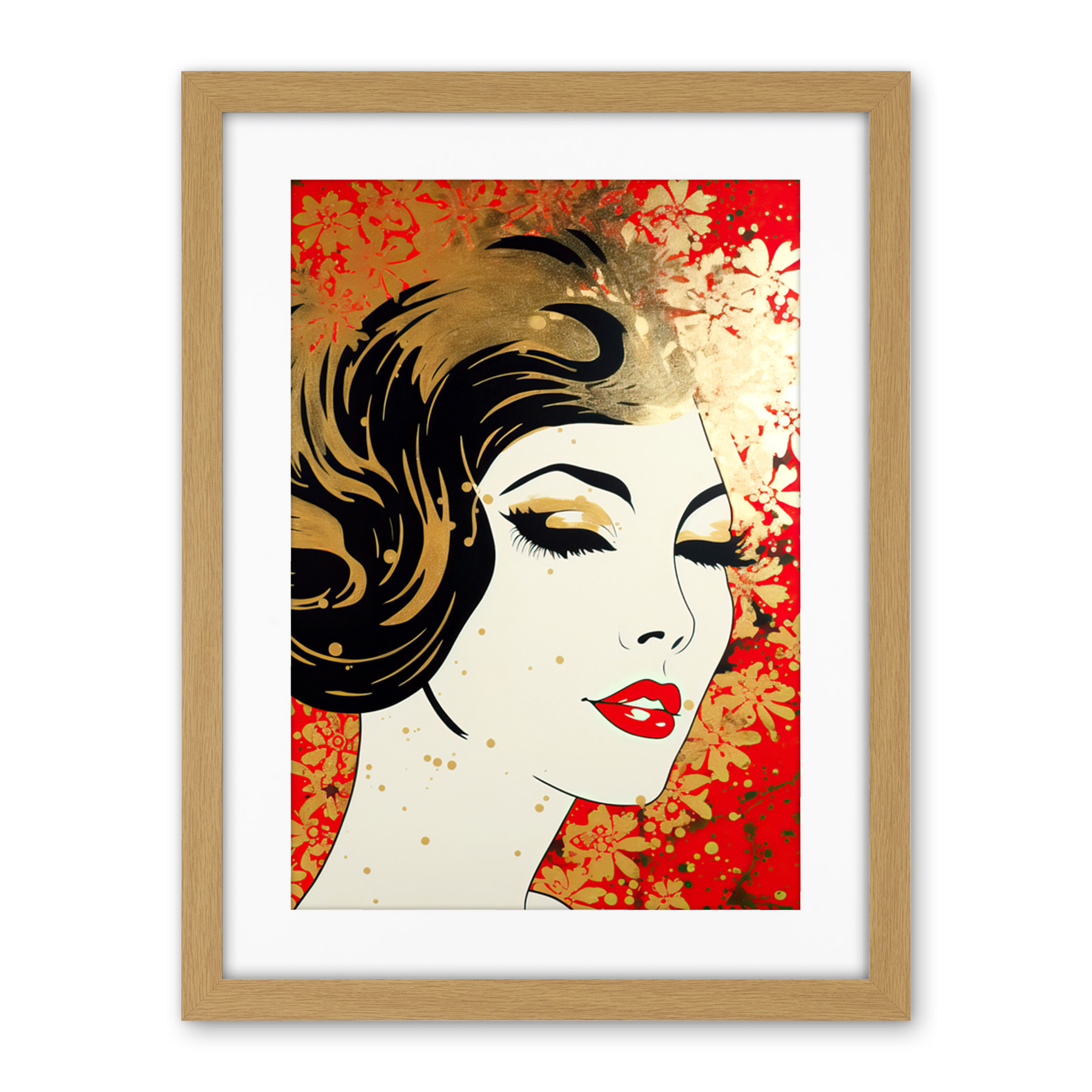Woman Face Retro Glam Aesthetic Gold Flower Pattern Portrait Framed Print 12X16 | ✔ Check At Store | £24.99 |