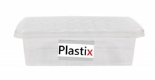 High quality storage boxes with handle bump closure (not lockable) on the lid. Clear to easily view contents. With black lid. 6 LITRE: Length at top 33cm x Width at top 22cm x Height: 10cm approx., Length at bottom: 28cm, Width at bottom: 16cm approx.