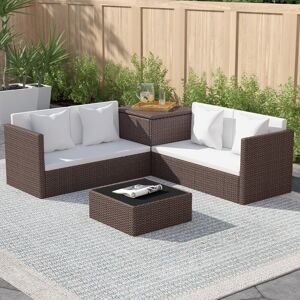 Main Material: Acacia Wood. Acacia Wood Outdoor Lounge Set for 4. Product Type: Lounge Set. Shade: Off-White. Do not tumble dry and do not iron. Differences in colour or texture, such as wrinkles or other natural features are not considered a defect and should not be a reason for complaint.