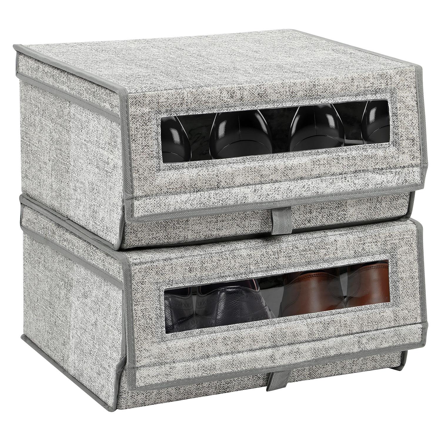 Tired of searching through a sea of shoes every morning?. The Stackable Fabric Shoe Storage Boxes are here to bring order and elegance to your shoe collection. Keep your favourite footwear neatly organized and easily accessible with this set of two stackable storage boxes.