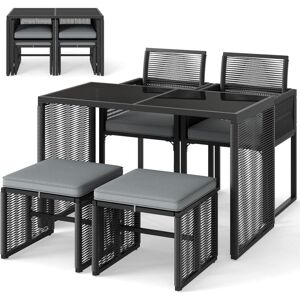 Featuring 4 armchairs adorned with beautifully woven, sunproof PE rattan, this patio furniture set promises both comfort and style. The floral cushions not only bring comfort, but also add more elegance to the whole dining set.
