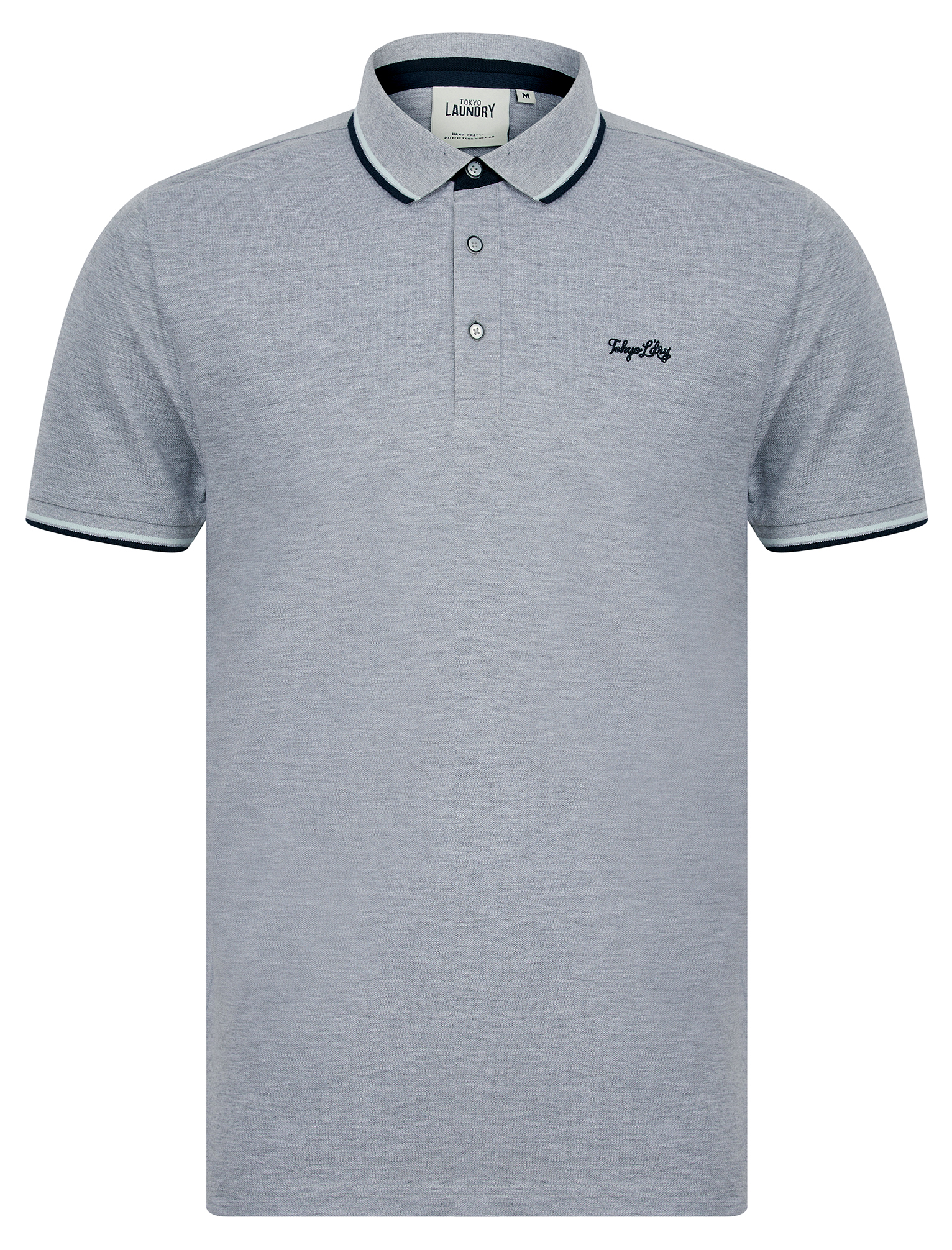 Cotton pique material. Do not tumble dry. Step hem with side splits. Light Grey Marl: 90% Cotton, 10% Viscose - Other Colours: 100% Cotton. Regular fit. Classic ribbed collar with two coloured tipping.