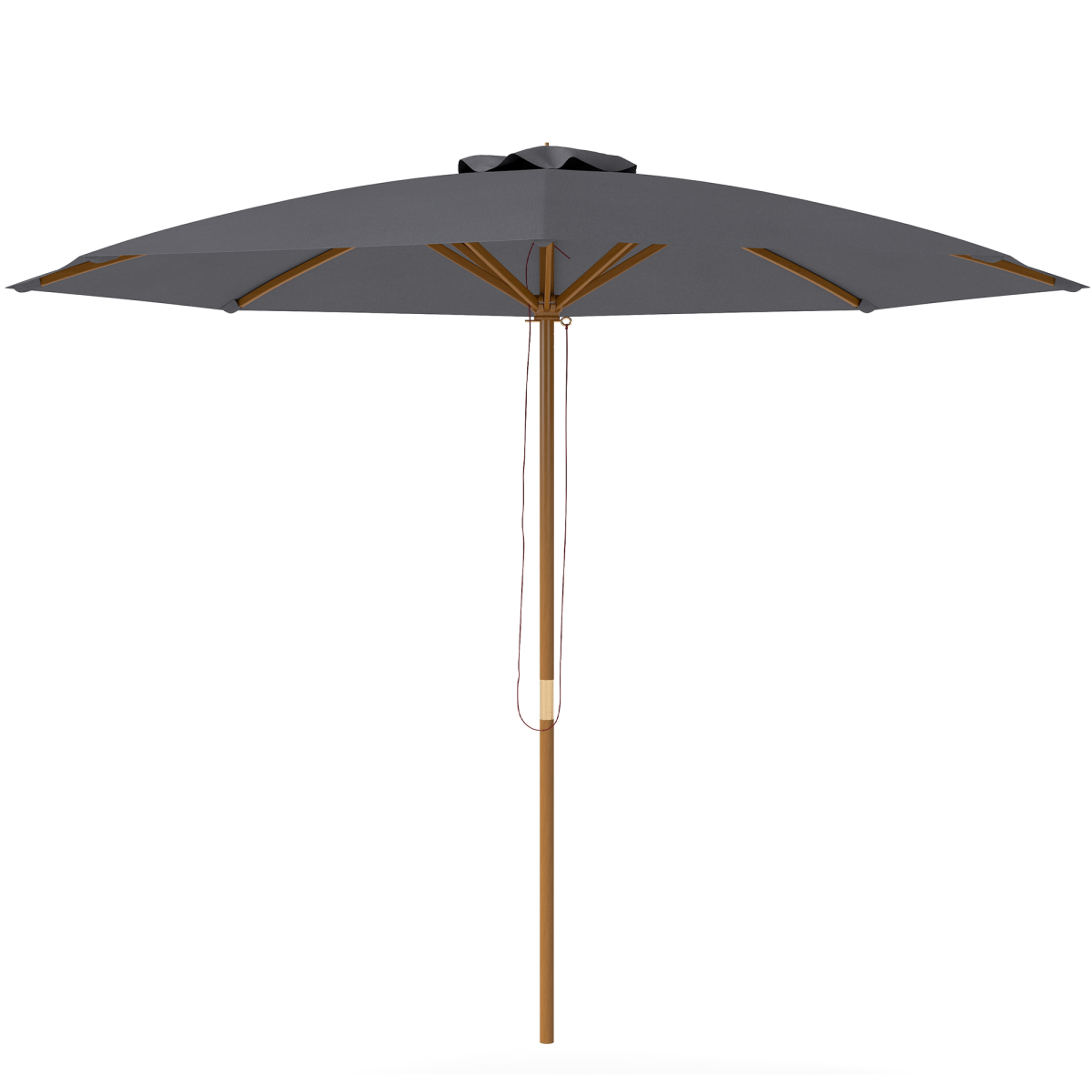 ● Fix to three positions with the latch design ● Rope pulley mechanism to open and close the parasol easily ● Tough polyester canopy, with a painted wooden frame ● Canopy vent helps prevent canopy turning inside out in wind ● Assembly required ● Colour: Dark Grey, Teak ● Materials: Polyester, Wood ● Overall Dimension: Dia. 300 x 250Hcm ● Item Label: 84D-429V00CG ● Note: Parasol only, the base is not included