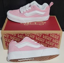 The VANS Knu Skool Size 1 Youth in Black Racing Red is a stylish and comfortable sneaker designed for casual occasions. With a round toe shape, lace-up closure, and flat heel, these canvas shoes feature the iconic VANS logo as accents. Ideal for summer, the rubber outsole provides good traction, making them suitable for racing activities. The moderate cushioning level ensures all-day comfort, while the low-top shoe shaft style adds versatility to the classic design. Perfect for both boys and girls, these VANS trainers are a new addition to the VANS Old Skool product line.