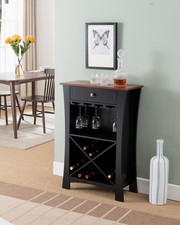 Add a touch of sophistication to your home with this elegant black wine cabinet with a convenient drawer. Crafted from sturdy pine material, this cabinet boasts a 16-bottle capacity and features a sleek design that complements any decor. The cabinet is perfect for storing and displaying your favourite wine collection, while the drawer provides additional storage space for your wine accessories. Ideal for any wine enthusiast, this cabinet is a great addition to your home or office. The black finish adds a touch of class to any setting, while the sturdy construction ensures your wine is safely stored. Whether you're hosting a dinner party or simply relaxing with a glass of your favourite wine, this cabinet is the perfect way to store and display your collection.