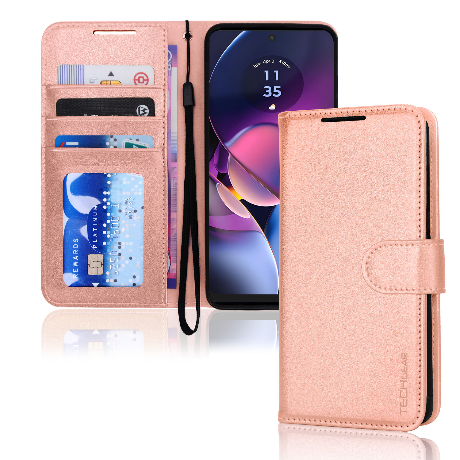 Motorola Moto G54 5G TECHGEAR® Premium PU Leather Wallet Case, Protective Flip Cover with Card Slots, Kickstand and Wrist strap. Custom designed specifically to fit the MotorolaMoto G54 5G. Exterior---Crafted from durable, sturdy, excellent grain PU leather.