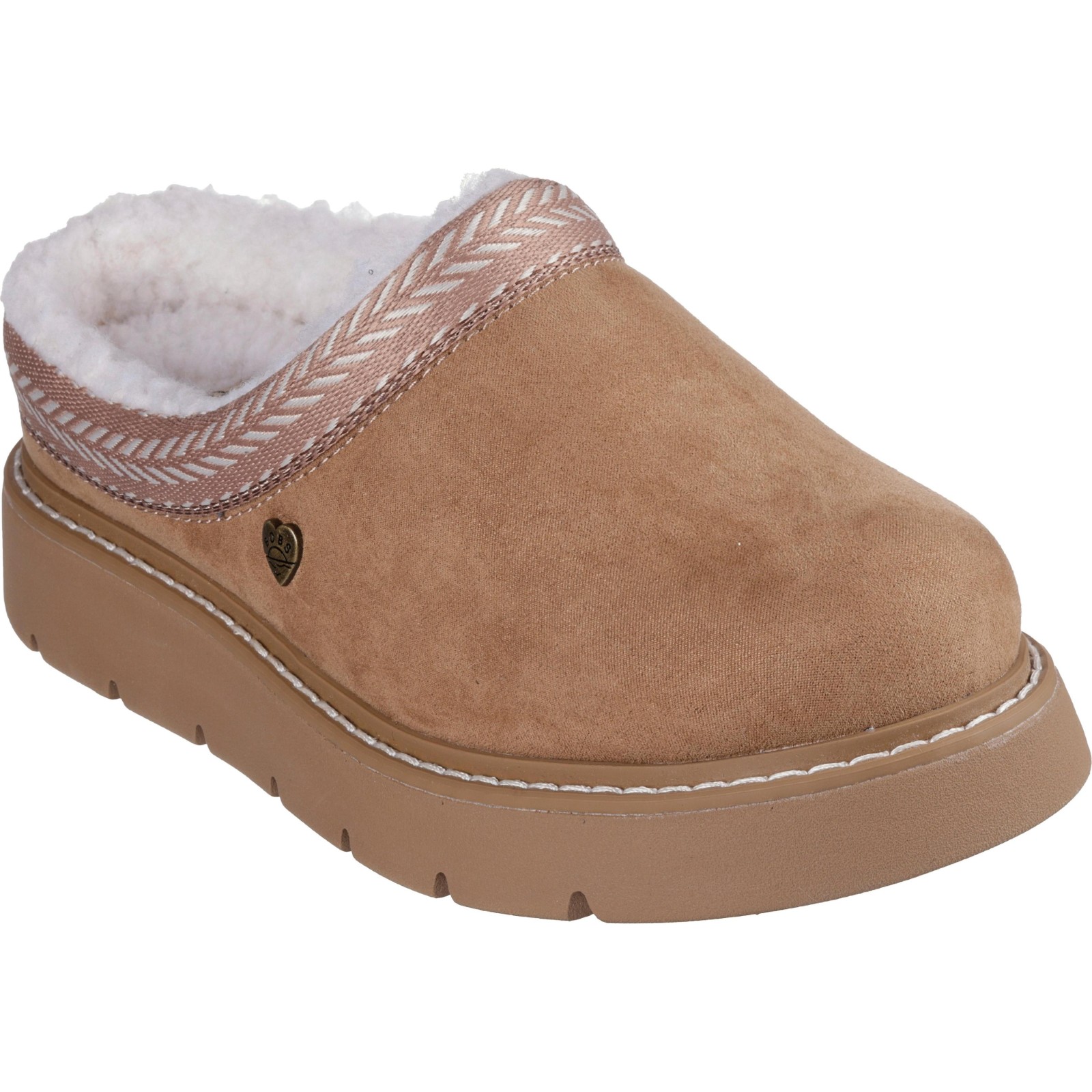Vegan suede slipper is soft, stylish, and animal-friendly., Faux shearling lining adds cosy warmth and plush comfort., Skechers Memory Foam™ cushioned insole provides personalised comfort with every step., 100% vegan materials, eco-conscious and cruelty-free construction., This everyday wear is perfect for lounging or casual indoor use.