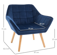 HOMCOM Luxe Velvet-Feel Accent Chair w/ Wide Arms Slanted Back Wood Legs Blue