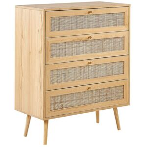 Living Room Chest of Drawers. This rustic chest of drawers, crafted from light pine wood, brings a natural charm to any room. Its ribbed drawer fronts add texture, while the spacious drawers, which come in two types, provide plenty of storage for your essentials. The simple yet stylish design, paired with its sturdy black legs, makes it perfect for bedrooms or living areas, adding warmth and character to your place. Details: Product Type: Chest of Drawers Style: Traditional General Color: Brown, Black Material Type: Wood Main Material: Pine Wood Frame Material: Wood Legs material: Wood Top Material: Wood Drawers: Yes Finish: Wax Polish Leg Caps/ Pads: No Number of Drawers: 4 Shelves: No Dimensions: Depth: 45 cm Width: 100 cm Height: 91 cm Weight: 28 kg Drawer Weight Capacity: 5/3 kg Top Weight Capacity: 40 kg Offer Includes: 1 x Chest of Drawers Key Features: Functional and Capacious Drawers, Perfect for Both a Bedroom and a Living Room, Blends Well with Any Decor, Top-Notch Quality