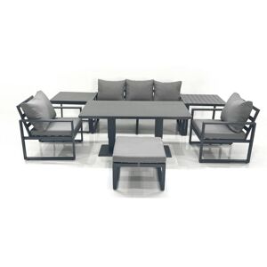 This deluxe aluminum adjustable rising sofa dining set is a great addition to your patio or garden, made of high quality Alloy aluminum and powder coating for sturdiness and structural durability. Set Dimensions: • 1 x 3 Seater Sofa: 166W x 73D x 78H cm • 2 x Chair: 74L x 70W x 78H cm • 1 x Side coffee table :68L x 68W x 59H cm • 1 x Big footstool:60L x 60W x 35H cm • 1 x Adjustable dining table:140L x 80W x 48/70H cm(Low 48cm Height 70 cm With Black Tempered Glass) Dark grey powder coated with dark grey fabric .Color may vary little due to light or monitor .we are unable to return the item due to color problem .please contact us before purchase if you have requirement on color saturation. Table can stop at any height between 48-70 cm .Cheap Price Compared With Other On or Offline Store For Rising Table Set Items Comes Flat Pack And Easy Assemble, Alloy aluminum Frame With Powder Coating To Prevent The Rust This Set Was Completely Made By Handmade, Black tempered glass With Sucker On