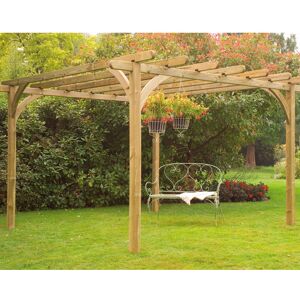 Precise dimensions: 10' x 10' (3.05 x 3.05m) Our beautiful, 10X10 Garden Pergola Kit, from the Forest range. The manufacturer supports the pressure treatment process with a 15 year warranty against rot Supplied flat-packed for self-assembly only! This pressure treated pergola kit will create an attractive feature in any garden. With its quality specification and rounded finish, this pergola kit offers exceptional value for money too! The Forest arbours and pergolas are a top quality range of garden products that are manufactured using timber sourced from managed resources. We will supply the this 10x10 garden pergola kit, pressure treated as standard, therefore no need to re-treat after self-assembly, this pergola will enjoy a long life due to the rot-resistant nature of its treatment. The 10x10 garden pergola kit is also supplied with all fixings and instructions, however ground fixings are not included, 2.70m long x 95 x 95mm posts to allow you to partially set these into the ground to support the structure. Please note: Main product size stated is to the posts, excluding the rail overhang. Timber garden pergola Pressure treated timber 15 year anti-rot warranty Instructions and fixings included