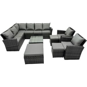 This deluxe high back rattan corner sofa set is a great addition to your patio or garden, made of high quality PE rattan and durable galvanized steel construction for sturdiness and long lasting. Durability ,and can be put outdoor all year round. Perfect set to sit round with your family and friends. Set dimensions: 1 x 3 Seater sofa with two arm : 170L x 69W x 79H cm; 1 x 3 Seater sofa with single arm: 160L x 69W x 79H cm; 1 x Square Coffee table size: 65L x 65W x 34H cm; 1 x Big Footstool :65L x 65W x 34H cm; 2 x Small fully assembled footstools 40L x 40W x 34H cm; 2 x Chair: 74W x 69D x 79H cm; Dark grey mixed rattan with dark grey fabric .Color may vary due to light or monitor .we are unable to return the item due to this problem .Please consult before purchase if you have requirment on color saturation. Items Comes Flat Packed And Easy to Assemble, Sturdy Galvanized Steel Tube Metal Frames With Powder Coating To Prevent Rust. Ergonomic High Back And Declining Design For Extra Comfort. Flat PE Rattan Completely Made By Hand, 5mm Thick transparent Tempered Glass With Sucker On Surface To Prevent Sliding8 cm Thick Seat Cushion With Soft Back Cushion provide You with More Comfort. Fimous 11 Seat Poly Rattan Corner Sofa Set with 3 Stool 2 Chairs in Dark Grey