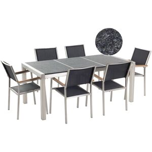 BELIANI Garden Dining Set 6 Seater GROSSETO Triple Plate Granite Flamed Black | ✔ Check At Store | £1,529.99 |