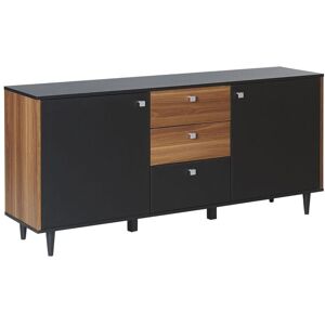 Modern Highboard Cabinet with 4 Doors. This elegant sideboard features a stylish fluted design and is equipped with four doors for concealed storage, providing ample space for organizing your items. Inside, you'll find spacious shelves to keep everything neatly arranged. The body and doors are crafted from durable MDF, known for its smooth finish and easy-care surface, making it a practical, low-maintenance choice. The sturdy iron legs provide reliable stability while adding a modern touch. Perfect for bringing both style and functionality to any contemporary living room or dining area, this sideboard offers long-lasting quality with minimal effort. Details: Product Type: Sideboard Style: Modern General Color: Black Material Type: Wood Main Material: MDF Additional Material: Iron Frame Material: Engineered Wood Legs material: Metal Top Material: Engineered Wood Doors Opening: Standard Drawers: No Finish: Painted Leg Caps/ Pads: No Number of Doors: 4 Shelves: Yes Dimensions: Depth: 40
