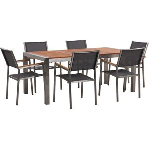BELIANI 6 Seater Garden Dining Set Eucalyptus Wood Top Grey Chairs Grosseto | ✔ Check At Store | £1,159.99 |