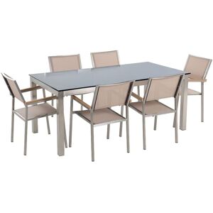 BELIANI 6 Seater Garden Dining Set Black Glass Top Beige Chairs Grosseto | ✔ Check At Store | £1,029.99 |
