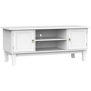 This TV stand is made from durable MDF and solid metal tubes. The selected materials provide you with much support and long-term service. To satisfy your storage needs, this TV bench has an open shelf and a tabletop for more storage, suitable for digital receivers, blue-rays, gaming consoles or books, etc. The functional and practical design keeps your entertainment components organized. Features: 1.【Quality Materials】 The TV stand is constructed from E1 MDF boards covered with waterproof finish, and iron tubes with a matte coating. Quality materials make this TV stand waterproof and durable for a long time. 2.【Versatile】 This rustic TV console table is versatile for many occasions, such as bedroom, living room, reception room, etc. You can also put it in your study or for commercial use. Its lower open shelf and the small shelf allow you to store and display items like books, magazines, mugs, cups, electronic devices, and so on. 3.【Easy Assembly】 This TV stand requires assembly, but