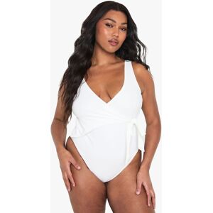 Boohoo Womens Plus Swimwear Essentials Tummy Control Wrap Swimsuit - White Polyamide - Size 22 Uk