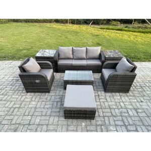 Set dimensions: 2 x 3 Seater Sofa: 177W x 65D x 66H cm; 1 x Big footstool 65L x 65W x 34H cm; 1 x Fire pit dining table: 140L x 80W x 70H cm; Dark grey mixed rattan with dark grey fabric .Color may vary due to light or monitor .we are unable to return the item due to this problem .Please consult before purchase if you have requirment on color saturation. the product is delivered on pallet, to kerbside only. Fimous Outdoor Rattan Garden Furniture Sofa Set Gas Fire Pit Dining Table Gas Heater Burner With 3 Seater Sofa in Dark Grey