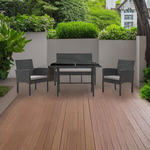 Introducing the Porto Garden Lounge, the perfect seating set for up to four people. Whether you place it in your garden, conservatory, terrace, or even on your balcony, this versatile rattan furniture exudes luxury and style. Crafted with durable poly rattan wicker, it is weatherproof and easy to clean. The individually removable cushion covers with zippers add convenience. The set includes a glass-top table, two single chairs with cushions, and a double sofa with a cushion. To ensure its longevity, we recommend covering the furniture during bad weather and cleaning it with a damp cloth. Elevate your outdoor space with the EVRE Porto Garden Lounge, where comfort and sophistication meet. Lark Manor Colour: Grey