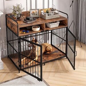 double dog crate dog crate furniture dog kennel wooden og crate medium dog crate Large Dog Crate Furniture with Drawer Storage Large Indoor Wood Dog Kennel Heavy Duty Metal Dog Cage Table 103×60×80CM - Rustic Grey Description 【Multi-functional Design】The Large Dog Crate Furniture serves as both a stylish dog crate and a functional furniture piece. Its large countertop can be used for decorative purposes or as a convenient surface for preparing dog food. 【Ample Storage Space】With two spacious drawers located beneath the countertop, this dog crate offers ample storage space for storing dog food, snacks, toys, and other pet essentials. 【High-Quality Materials】Constructed with high-quality steel and particleboard, this dog kennel is not only waterproof and easy to clean but also highly durable and resistant to chewing. 【Flexible and Safe】The double opening front door and single opening side door provide flexibility in adapting to different furniture layouts. The guardrail design of