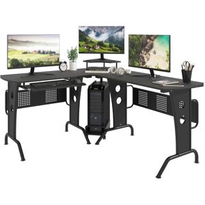 Feature: E1 grade particle board with wood grain veneer for durable use and easy maintain. • Three worktops for lots of room for working or gaming With freely movable underneath shelf for computer host Adjustable foot pads to keep desk stable and protect floor beneath Spacious underneath for leg comfort Assembly required Specification: Colour: Black, Brown Wood Brain Material: Metal, E1 Grade Particle Board Overall Dimension: 150L x 150D x 75H cm Large Desk Top Size: 95L x 55W cm Middle Desk Top Size: 55L x 55W cm Host Shelf Size: 40L x 24W cm Max. Load: 50kg 1 x Computer Desk 1 x Installation Manual