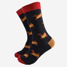 HOT DOG SAUSAGE DOG BLACK MENS PAIR OF NOVELTY SOCKS | ✔ Check At Store | £8.99 |