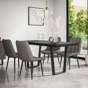 The Donni Dining Table is a beautifully crafted rectangle dining table with a timeless, minimalist design. The table boasts an elegant hardwearing, scratch resistant Black Oak effect table top that brings warmth and natural charm to any dining space, perfectly complemented by unique, sturdy, solid Black metal legs for a modern contrast. The Donni's simple yet sophisticated design makes it a versatile centrepiece, ideal for both casual meals and formal gatherings. The Donni Dining Table can seat 4-6 people, and yet its compact rectangle shape is perfect for maximizing space while creating an inviting and intimate dining experience. The Donni Dining Table is available in a range of tops (Grey, White Marble effect. Oak effect, and Black), with Black metal legs. With the Monza Dining Chair the Donni Dining Table will be the complete set. With a choice of Linen and Faux Leather in various colours, this sleek modern Dining Chair compliments the Donni Dining Table brilliantly. Available as a set of 4 or 6 with the Donni Table. Dimensions: Height: 75cm. Width:160cm. Depth: 180cm. Leg Depth: 75cm. Leg Width: 145cm. Chair Height: 92cm. Chair Width:45.5cm. Chair Depth: 58cm. Seat Depth: 43cm. Seat Width: 44cm. Seat Height: 46cm. Backrest Height: 50cm. Backrest Width: 35cm. George Oliver Colour: Oak/Black/Grey