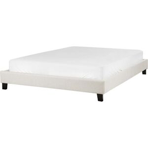 Minimalistic Upholstered Boucle Bed Frame. Enjoy a peaceful night's sleep with this minimalistic bed frame. Its modern, universal design complements any interior décor. Upholstered in high-quality boucle fabric, the frame features wooden slats ensuring even bodyweight distribution. Without a headboard, this bed is ideal for rooms with low, slanted ceilings. Details: Product Type: Double Bed Style: Scandinavian General Color: Beige, Brown Shade: Light Beige Material Type: Fabric Main Material: Boucle Additional Material: Plywood Material Composition: 100% Polyester Fabric Upholstered Back: No Dimensions: Width: 150 cm Length: 213 cm Height: 29 cm Sleeping Surface: 140x200 cm Weight: 22 kg Weight Capacity: 300 kg Offer Includes: 1 x Bed Frame, 1 x Slatted Frame (26 Sprung Slats), Not Included: Mattress, Bedding and Cushions Key Features: Suitable for All Types of Mattresses, Shock-absorbing Slatted Bed Base Offers Perfect Support, Minimalistic, Scandinavian Style, Sturdy Frame