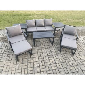 This deluxe aluminium outdoor sofa set is a great addition to your patio or garden, made of high quality Alloy aluminium and powder coating for sturdiness and structural durability. Set Dimensions: • 1 x 3 Seater Sofa: 166W x 73D x 78H cm • 2 x Chair Size: 74L x 70W x 78H CM • 2 x Side coffee table :68L x 68W x 59H cm • 2 x Big footstool :60L x 60W x 35H cm • 1 x Oblong Coffee table : 97L x 52W x 51H cm Dark grey powder coated with dark grey fabric .Color may vary little due to light or monitor .we are unable to return the item due to color problem .please contact us before purchase if you have requirement on color saturation. Items Comes Flat Pack And Easy Assemble, Alloy Aluminium Frame With Powder Coating To Prevent The Rust This Set Was Completely Made By Handmade, Aluminum table top Without glass, 9 CM Thick Seat Cushion With Soft Pillow Back Cushion Gives You More Comfort Low Maintence ,Removable Cushion Cover And Easy Move To Different Place.Pls Keep the Cushion Indoor Or With