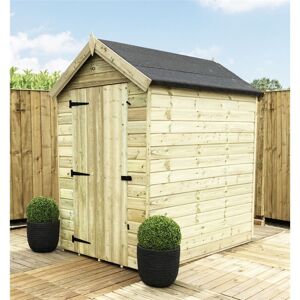 4FT x 6FT Windowless Pressure Treated Tongue & Groove Apex Shed Low Eaves Pressure Treated Single Door 12mm Pressure Treated Tongue & Groove Walls 10mm Solid OSB Floor & Roof 28mm x 44mm Rounded Framing Button Lock Mineral Roofing Felt Easy Assembly UK Manufactured 10 YEAR ANTI-ROT WARRANTY FREE MAINLAND DELIVERY*