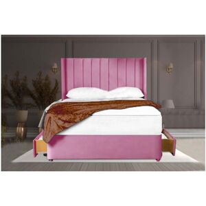 Sr Living Ltd - 4FT6 Double Pink Plush Divan Bed Set, Vertical Headboard, 10'' Spring Foam Mattress, 2 Drawers