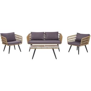 Beliani - Rustic Country Conversation Sofa Set Faux pe Rattan Beige Grey Cushions Fobello | ✔ Check At Store | £499.99 |