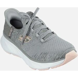 Enjoy well-cushioned performance while minding your footprint wearing Skechers Hands Free Slip-ins Relaxed Fit: Edgeride Impression. Designed with recycled materials, this vegan athletic style features a stretch knit upper with fixed stretch laces