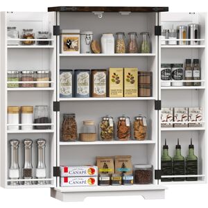- Distressed wood-effect, with black metal hardware - a unique, rustic-looking design - Inner storage in two halves: each features two shelves, a total of six compartments - Four doors, each with handles to open and close easily - MDF structure is durable, with anti-tipping straps for safety around children and pets - Maximum load 60kg, assembly required