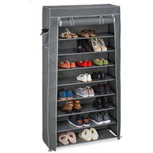 Tired of mountains of shoes piling up in the entrance area? Make your life a little easier with this shoe cupboard. In 12 compartments, you have enough space to store your shoes and keep them tidy. The shoe chest impresses with its descreet design in black. The plastic shelf is light and thanks to its modular construction, it can be extended as required. The plug-in shelf can be put together quickly and converted at any time if necessary. Shoe cupboard in detail - Overall dimensions H x W x D: approx. 95 x 85 x 31.5 cm - Dimensions of compartments H x W x D: approx. 14.5 x 40 x 30.5 cm - Load capacity: approx. 1.5 kg per compartment - Weight: approx. 5.9 kg - Material: Plastic (PP, ABS), metal - Colour: Black Shoe cupboard with 12 compartments - Clearly arranged and opaque storage for shoes - Quick assembly thanks to expandable plug-in system - Space-saving storage system in a simple design - Low weight thanks to easy-care plastic components - Shape can be flexibly adapted to rooms as