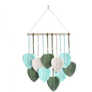 Tlily - Leaves Macrame Wall Hanging Green Leaf Boho Decor Yarn Tapestry Handmade b