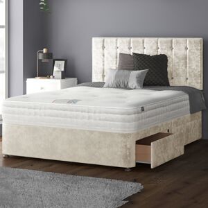 Introducing our stunning Divan Bed with a striped 24-inch diamond studded headboard designed to transform your bedroom into a haven of comfort and style. Crafted with meticulous attention to detail, this bed combines opulence and practicality to give you the best of both worlds. Indulge in the soft, sumptuous embrace of our Divan Bed, available in crushed velvet materials. The velvet adds a touch of elegance and warmth to your space, making every night's sleep a truly luxurious experience. Divan Bed features 2 drawers option on the left or right for Single & 2 drawers at the foot end and 4 drawers options for Small Double, Double, King size, and Super King size, providing ample storage for your bedding, pillows, and more. A divan bed with no drawer options is also available. The 24-inch headboard on struts serves as a striking focal point in your bedroom. Its elegant design not only offers comfort for sitting up in bed but also adds a touch of sophistication to your decor. Relax and unwind in style. Crafted with exceptional attention to detail, our beds are manufactured in England to exceed the stringent quality and safety standards set by the UK ensuring stability and support for years to come, providing you with nights of uninterrupted, restful sleep. Upgrade your bedroom with the perfect blend of luxury and functionality. Our Divan Bed with a 24-inch headboard and convenient drawers option is the ultimate choice for those who appreciate comfort and style. Rosdorf Park Colour: Silver, Size: Double (4'6), Storage Type: No Drawers