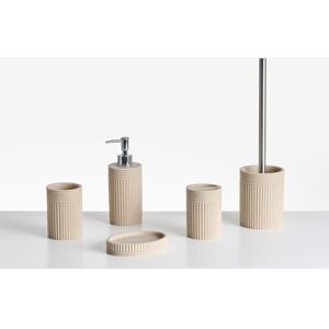 Fluted Bathroom Essentials Set. This 5-piece set of assorted accessories will give your bathroom a modern and stylish character. Including everything that one may need for smart organisation: a tumbler, a toothbrush holder, a soap dish, a toilet brush and a soap dish, it makes everyday routine easier. The light beige tone and ribbed surface lend it a subtle, organic look. Details: Product Type: Bathroom Accessories Set Style: Modern General Color: Beige Shade: Light Beige Material Type: Synthetic Material Main Material: Polyresin Additional Material: Synthetic Material Finish: Painted Dimensions: Overall Dimensions: 10x10x37 Weight: 1.7 kg Offer Includes: 1 x Toilet Brush, 1 x Tumbler, 1 x Soap Dispenser, 1 x Soap Dish, 1 x Toothbrush Holder Key Features: Keeps your Bathroom Neat and Well-Organised, Effortless Liquid Dispensing Thanks to a Smooth Pump Mechanism, Toilet Brush Designed with Firm Bristles for Thorough Cleaning, Tumbler Ideal for Rinsing or Storing Everyday Essentials,