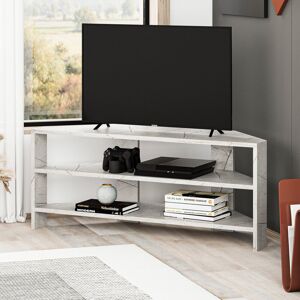 This 110-cm-wide corner TV stand is the perfect addition to any living room. Its unique and modern design will add a touch of style to any space, while its spacious open shelves provide ample storage for your media devices. For added safety and style, the unit features softened, rounded edges, minimizing sharp corners while enhancing the clean, modern look. The TV stand is suitable for up to 32-inch TVs, making it a great option for any size living room. The TV stand has a contemporary look that will complement any décor, and it comes in many color options, so you can easily find the perfect match for your space. It is constructed with durability in mind, ensuring that it will last for years to come. The stand’s clean lines and sleek design will bring a touch of sophistication to your living room while keeping your media devices organized and accessible. Zipcode Design Colour: White/Black