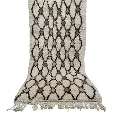 Vintage Handmade Moroccan Berber Rug Cream Fringe Taupe Diamond Pattern Carpet | ✔ Check At Store | £185.40 |