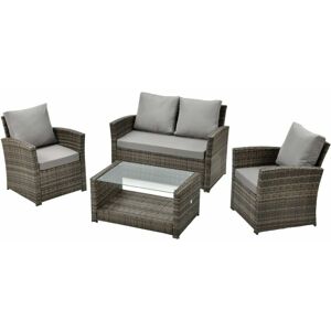 Evre - Brown Rattan Garden Furniture Set Patio Conservatory Indoor Outdoor 4 Seater Piece Modular Sofa Loveseat Chair Glass Top Coffee Table with | ✔ Check At Store | £179.99 |